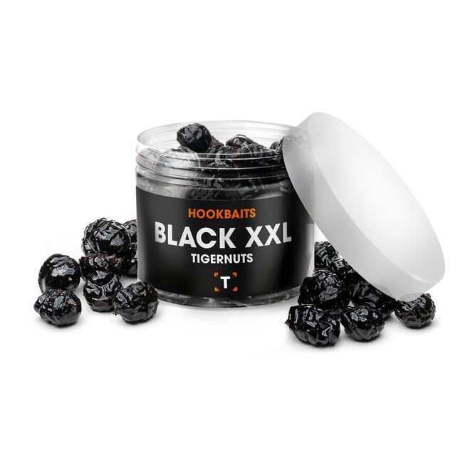 Zwarte XXL tijgernoten zijn grote dressuur doorbrekende noten. Door de afwijkende kleur en dikkere schil, is dit voor veel karpers een nieuw soort aas. Ook zijn zwarte tijgernoten zoeter dan normale tijgernoten. Door het grotere formaat van deze tijgernoot zal witvis het aas niet kunnen oppakken. Overigens wordt er voor extra attractie nog tijgernoten olie bijgevoegd.
