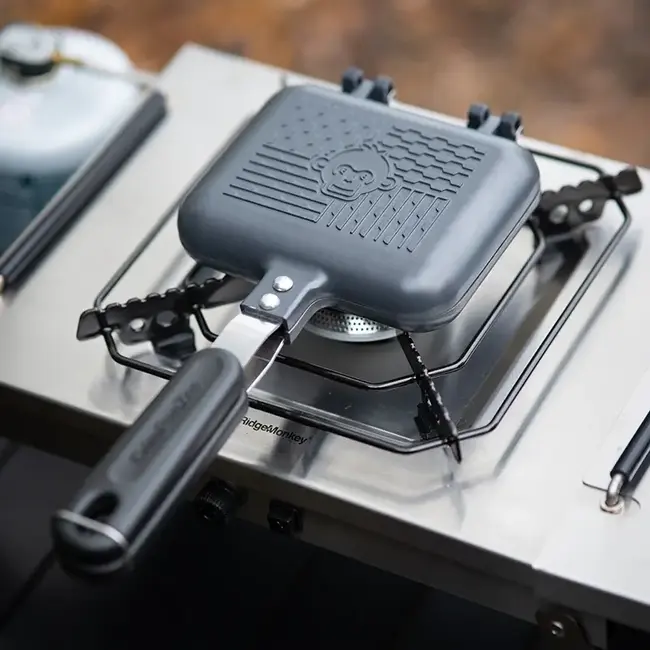 RidgeMonkey CrimPanZee is de ultieme combinatie van tosti-ijzer en crimper voor vissers en buitenkoks die meer willen dan standaard maaltijden.