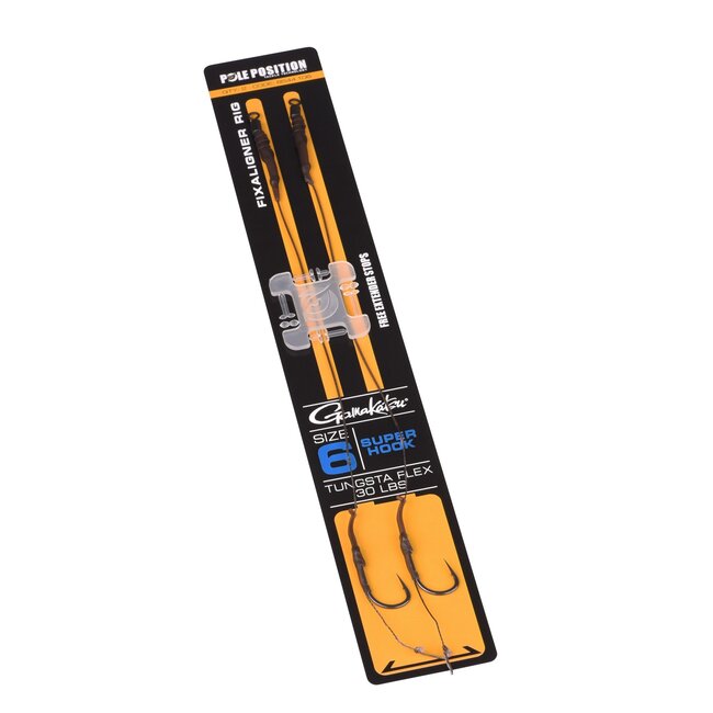 Deze fixaligner rig combineert pole position zijn soft coated tungsta Flex onderlijnmateriaal met een gamakatsu super hook en een fixaligner.