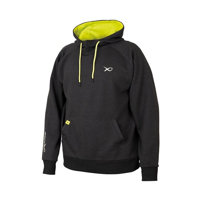 Deze hoody is comfortabel en trendy, voorzien van een capuchon, kangoeroe zak aan de voorzijde, lime voering/trekkoorden, elastieken band om de middel en polsen en matrix logo op de borst.