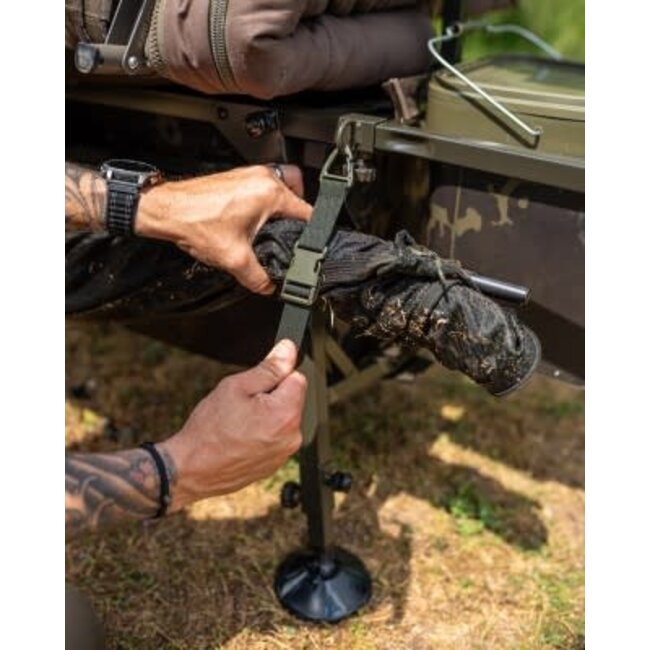 De Carp Porter Retainer Sling Straps zijn de ideale oplossing om je uitrusting georganiseerd en droog te houden tijdens elke vissessie. Deze sterke en betrouwbare straps zijn speciaal ontworpen om aan de ringen van het hoofdframe van je barrow te worden bevestigd, zodat je natte netten, slings en retainers eenvoudig onder de basis kunt ophangen. Zo blijft al het vocht netjes op de grond en niet tussen je andere spullen.