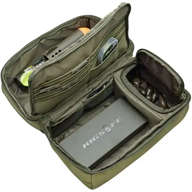Deze pouch is voorzien van een, met ritsafsluitbare folie gevoerde opslagruimte voor het opslaan van ready-made pva zakjes, plus een groot aantal zakjes en een gaasvak voor het opbergen van reserve-pva spoelen.
